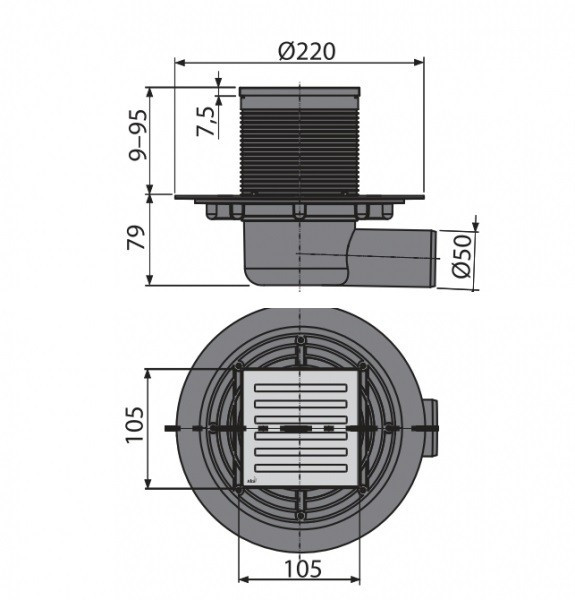 Фото Сливной трап Alcaplast APV203 105x105/50 мм