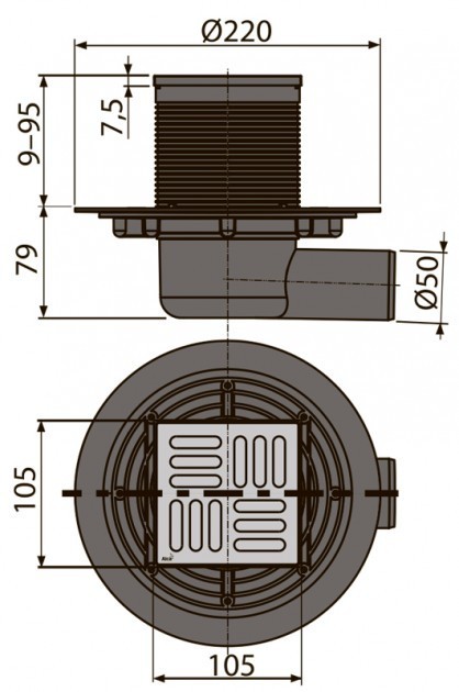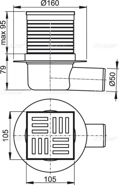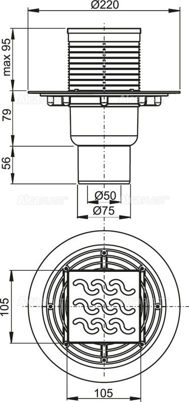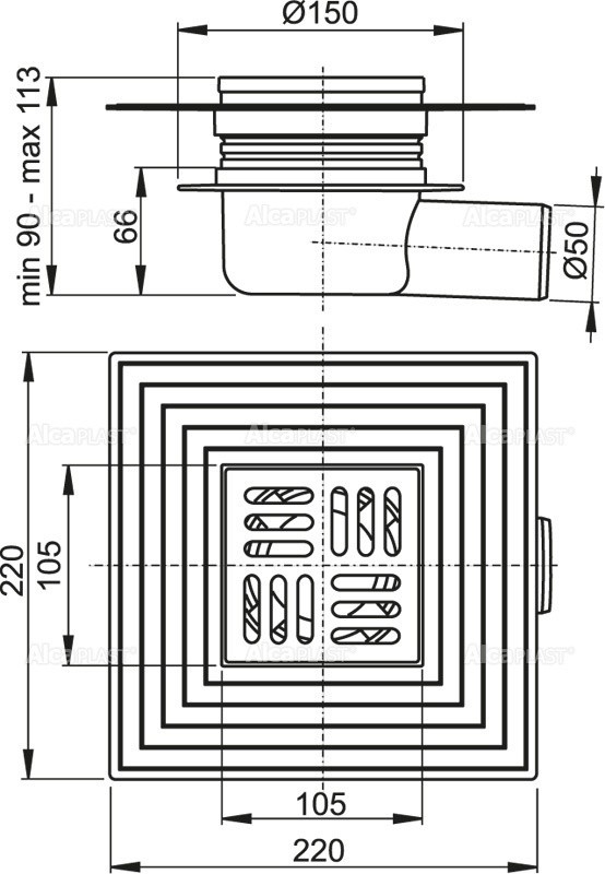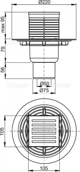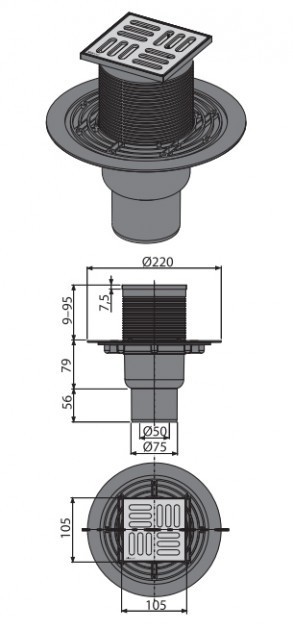 Фото Сливной трап Alcaplast APV2321 105x105/50/75 мм