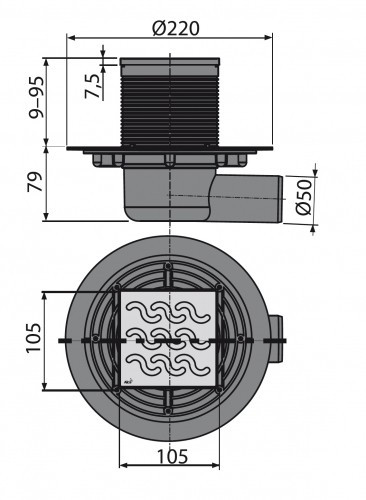 Фото Сливной трап Alcaplast APV202 105x105/50 мм