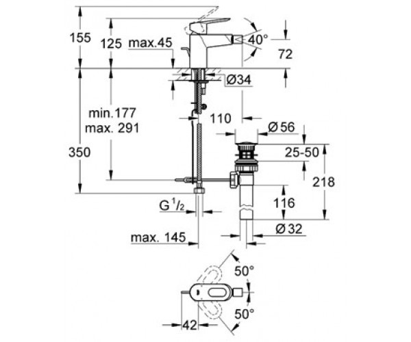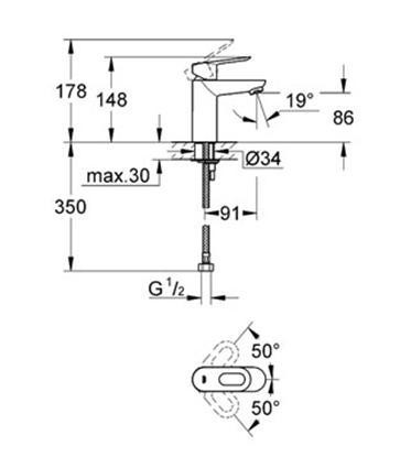 Фото Смеситель для умывальника Grohe Bau Loop + сливной гарнитур (23158000)