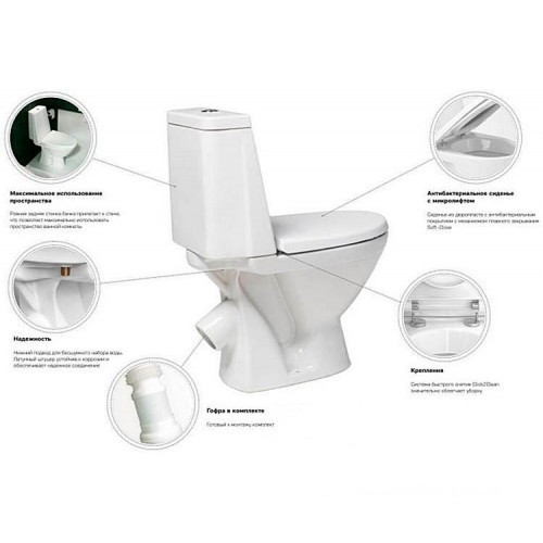 Унитазы-компакты Kolo. Благодаря прочным материалам и технологиям их обработки, такие унитазы не задерживают загрязнения на поверхности и не поддаются ржавчине. Для их очистки можно использовать самые простые и слабые средства