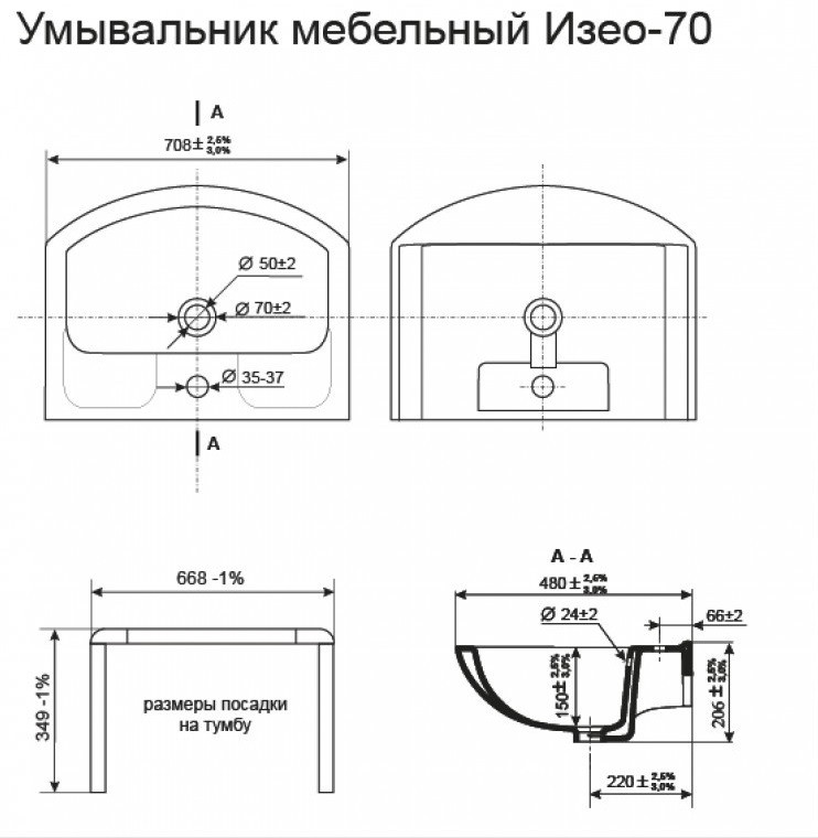 Фото Тумба SlavutaP Оскар Т-16 с умывальником Изео 70