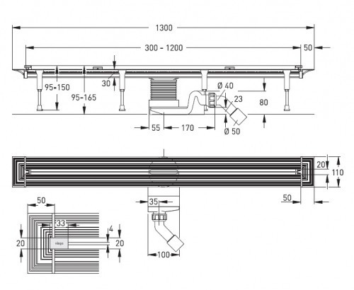 Фото Комплект трап с решеткой Advantix Vario SR1 (мат) 704353 300-1200 мм