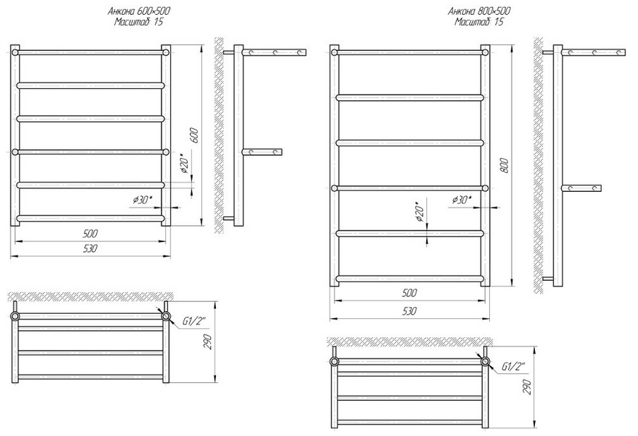 Фото Полотенцесушитель Mario Классик 600х500 Б/П 1"