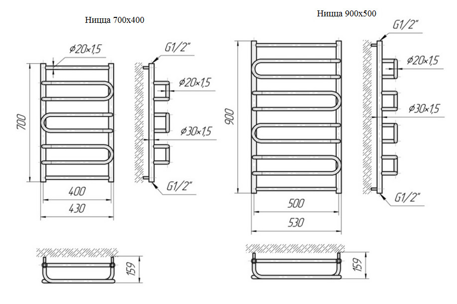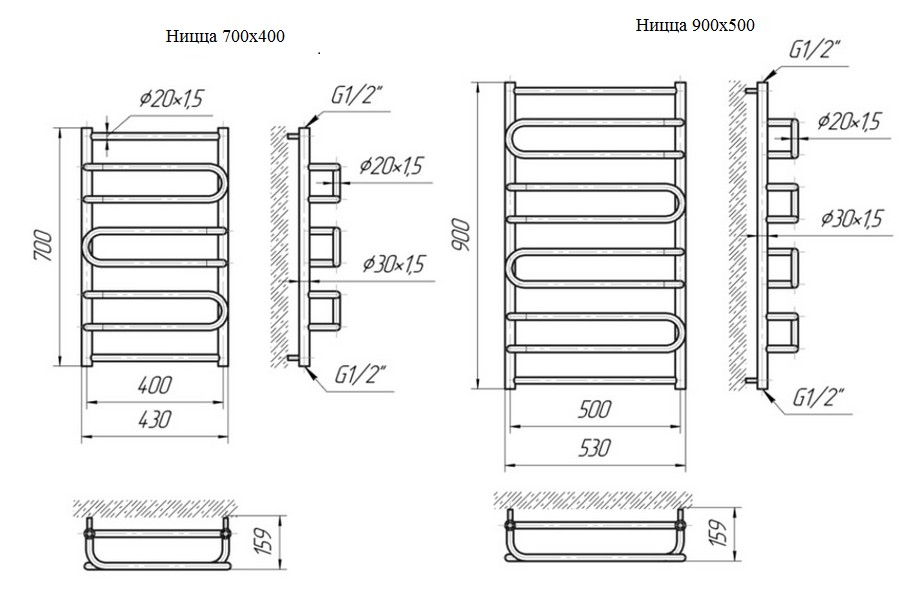 Фото Полотенцесушитель Mario Классик 700х500 Б/П 1"