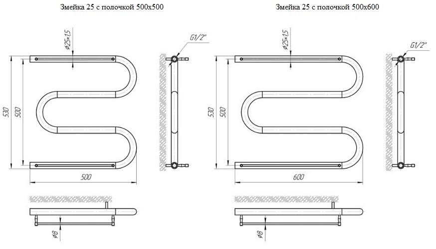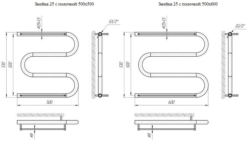 Фото Полотенцесушитель Mario Змейка 25 500х600 с полочкой