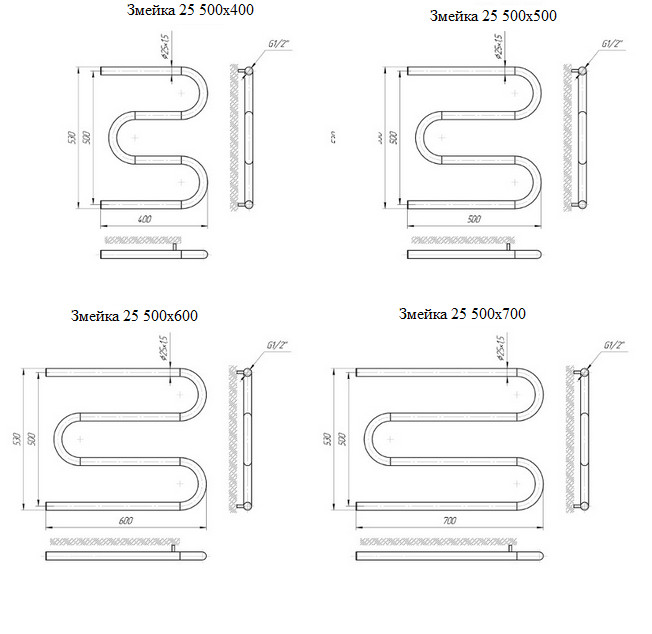Фото Полотенцесушитель Mario Змейка 25 500х600 с кольцами