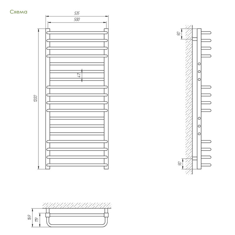 Полотенцесушитель Laris Солар П23 500х1200