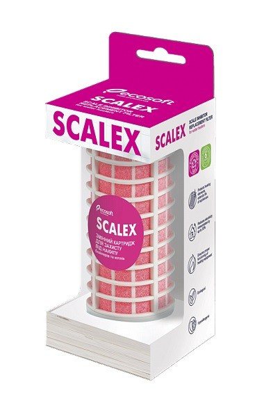 Фильтрующий материал в картридже Ecosoft Scalex предотвращает образование кристаллов накипи, препятствует их дальнейшему росту, а также способствует разрушению уже сформировавшихся кристаллов.