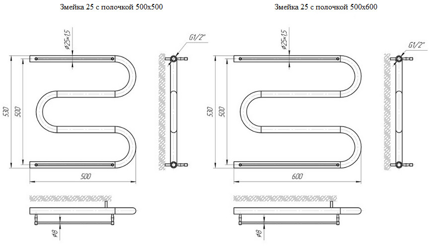 Полотенцесушитель змейка 25 с полочкой достаточно распространенная модель, которая подойдет в любой интерьер Вашей комнаты. Проста в исполнении и довольно не плохо выполняет свои функции не смотря на другие и более дорогие модели. Полотенцесушитель подключается к центральной системе отопления или же к индивидуальной. Он выполнен из полированной нержавеющей стали AISI 304. Не теряет свой внешний вид при постоянном воздействии влаги и конденсата, она стойкая к появлению коррозии и ржавчины.