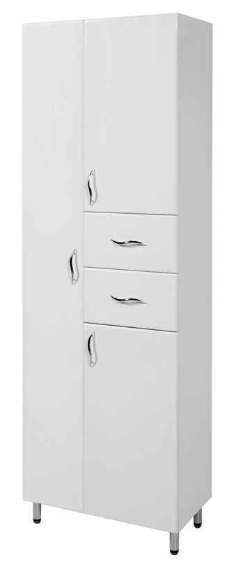 Корпус выполнен из ламинированного ДСП в белом цвете, имеет дополнительное лаковое глянцевое покрытие. Фасады состоят из трех белых лицевых панелей и двух шухляд, которые выполнены из МДФ и окрашены влагостойкой высококачественной эмалью с высокой степенью блеска. Ручки в данном пенале имеют волнистую форму.
