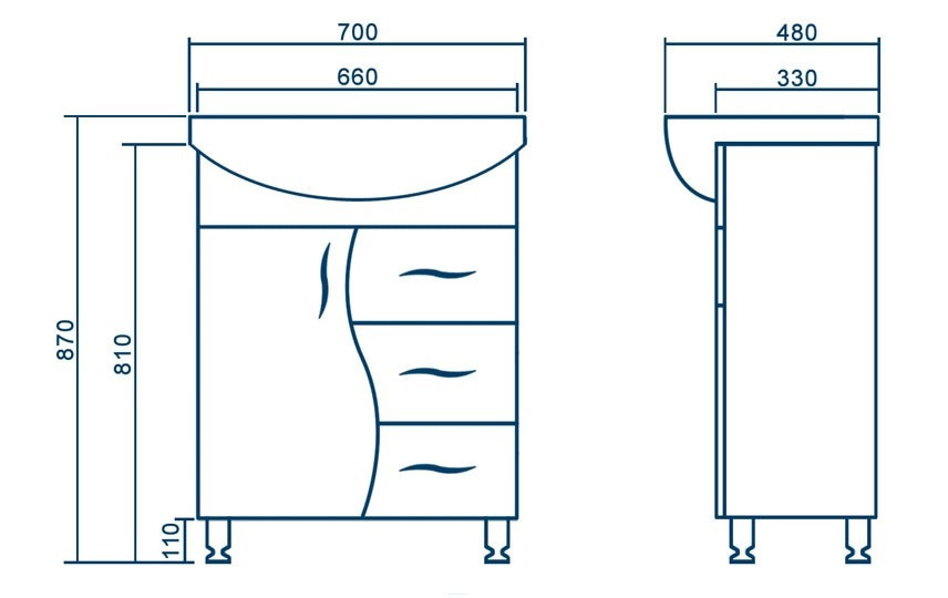 Тумба с умывальником АРИАЛ Волна Изео 70 Т-10