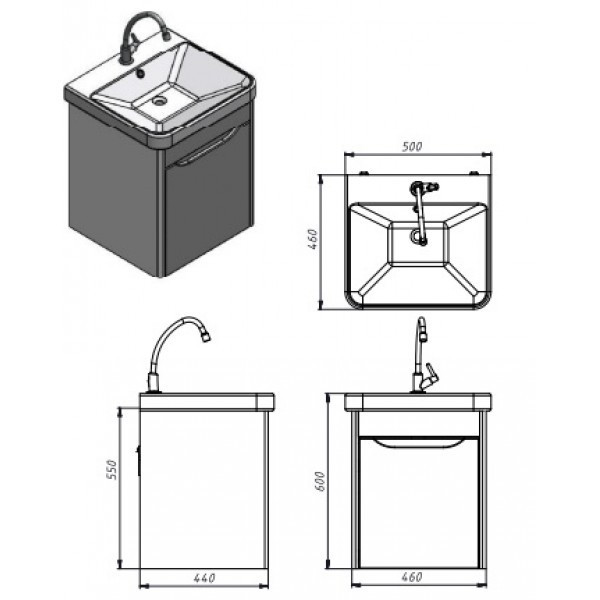 Тумба комплектуется керамическим умывальником «Luxury-50», производитель «Sanovit», Турция.