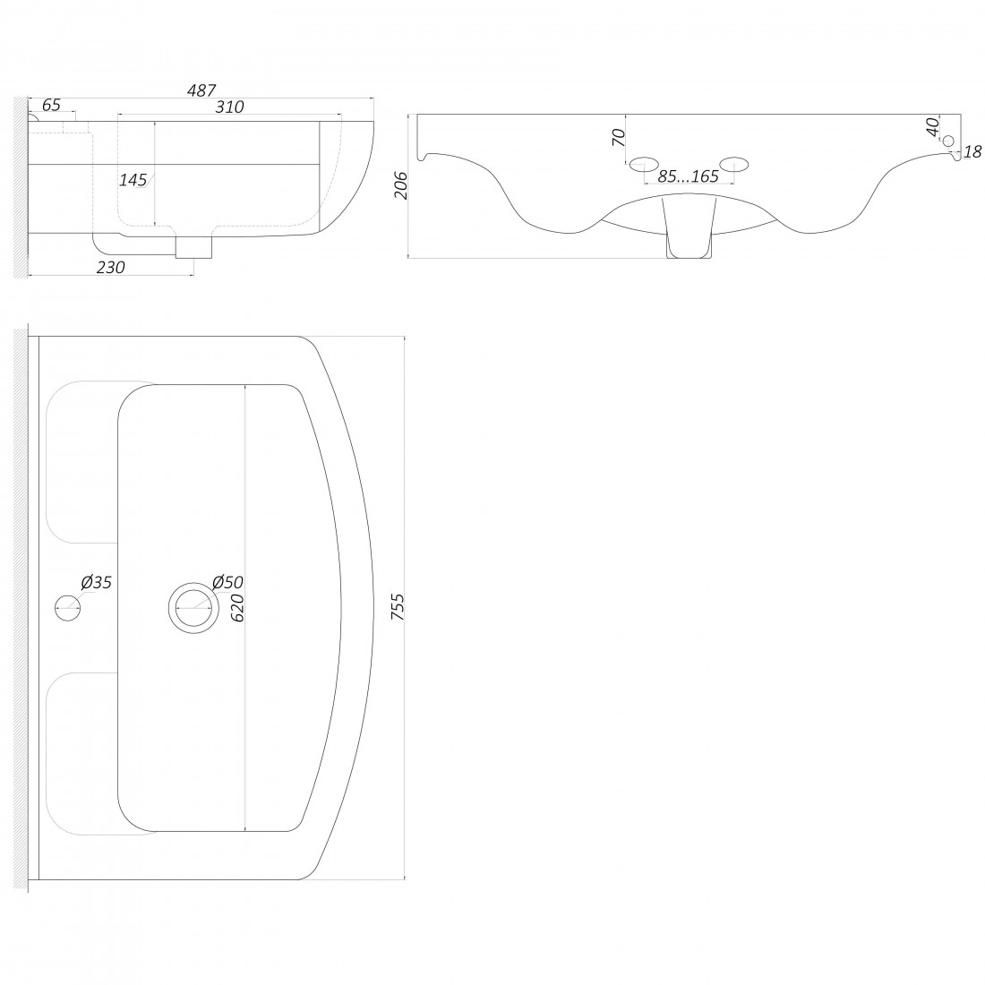 Тумба Ариал Ямайка 75 Т-6 с умывальником Изео 75