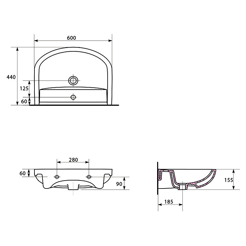 Корпус: ДСП Kronospan (толщ. 16 мм) влагостойкое, покрытое высокоглянцевой эмалью "SAYERLACK (Италия)"
