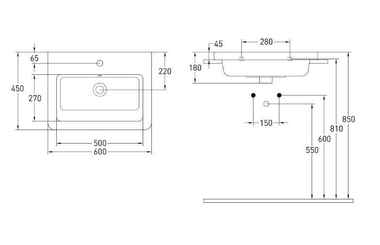Керамічна накладна раковина з переливом
