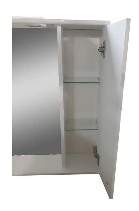 Дзеркало Сімпл 100 з LED підсвічуванням і розеткою з вимикачем, оснащене двома дверками а всередині по дві скляні полички. Корпус виконаний з ламінованого ДСП в білому кольорі, має додаткове лакове глянсове покриття. Фасад складається з білих лицьових панелей які виконані з МДФ, грунтовані а поверх покриті лаком з високим ступенем блиску. Ручки в дзеркалі мають приховану форму. Можлива комплектація тумбою і пеналом цієї серії.