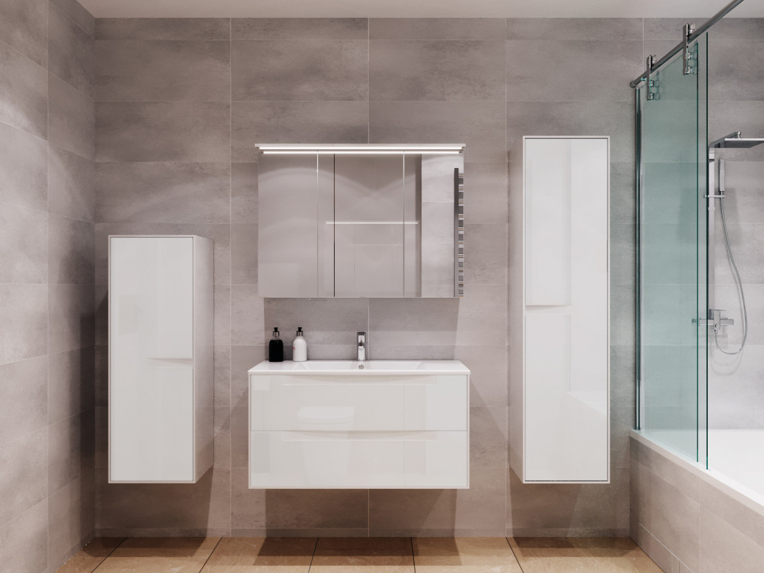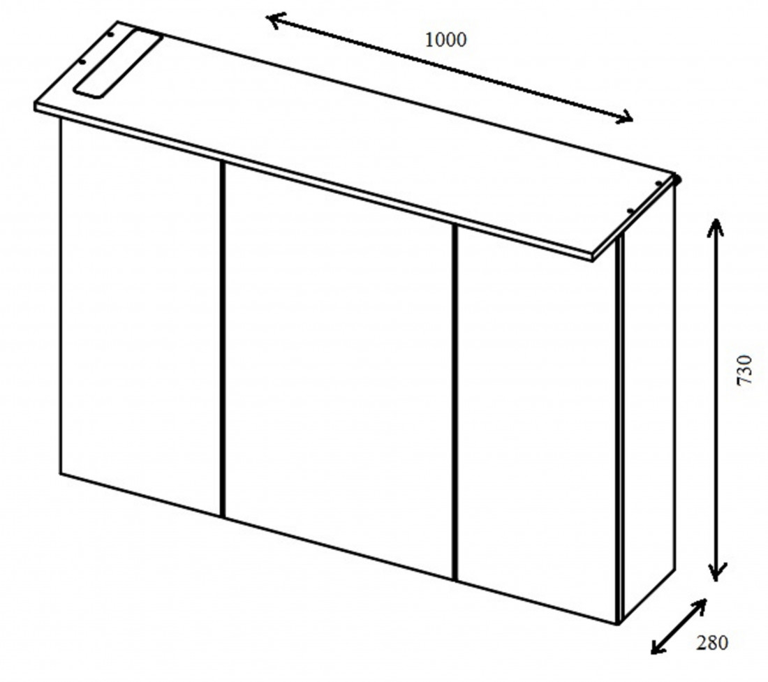 Зеркальный шкаф укомплектован LED-освещением, а также розеткой 220В и выключателем для освещения.