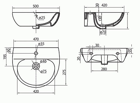 Умывальник Kolo Runa 50 с отверстием под смеситель