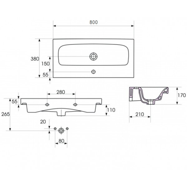 Меблевий умивальник MODUO SLIM 80