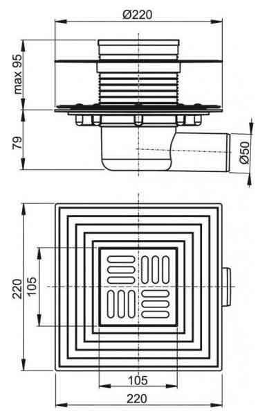 Сливной трап Alcaplast APV1324 105x105/50 мм