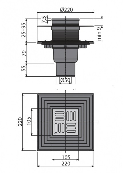 Сливной трап Alcaplast APV2324 105x105/50 мм