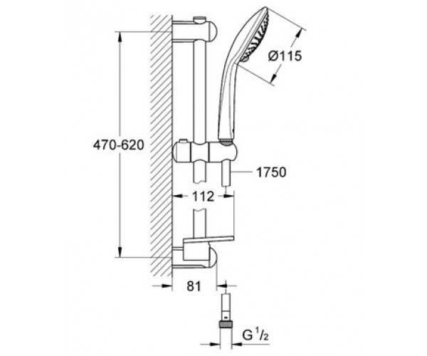 (регулируемое расстояние между настенными креплениями штанги позволяет использовать для монтажа уже имеющиеся отверстия в стене)