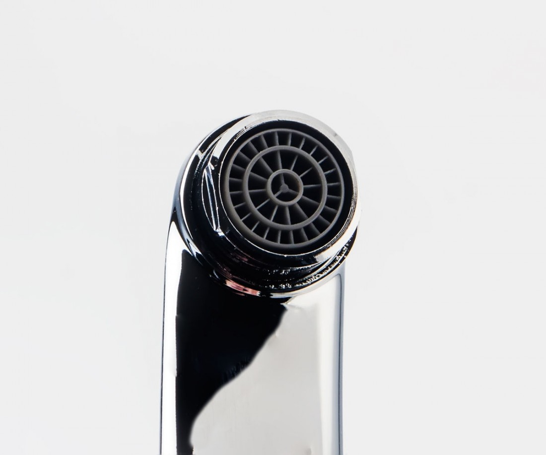 Одним поворотом рычага у основания крана вы можете регулировать температуру воды и силу напора. За счет аэратора достигается экономия воды до 20%.