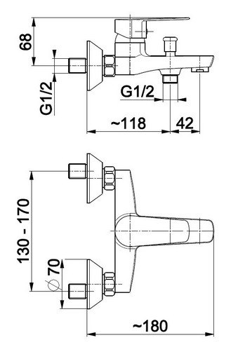 ARMATURA SOFIT 5114-010-00 – однорычажный смеситель, предназначенный для настенного монтажа над ванной на 2 отверстия.