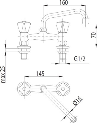 Особенности: золотниковая головка, аэратор, длина поворотного излива 160 мм; подвод G 1/2;