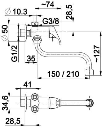 Особенности: регулятор керамический Ø25; аэратор в изливе; длина поворотного излива 150/210 мм; настенный монтаж на 1 отверстие;