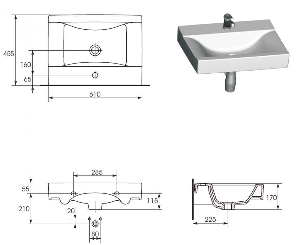 Фото Тумба Cersanit Alpina с умывальником Omega 65