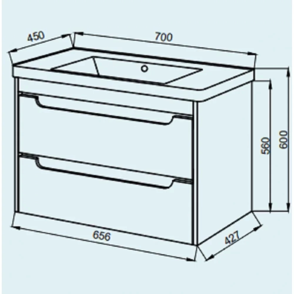 Тумба підвісна Valencia 70 GREY ТП-2 Д сіра з умивальником Комо 70