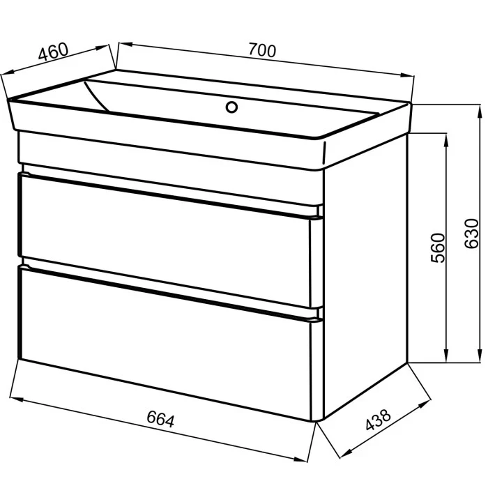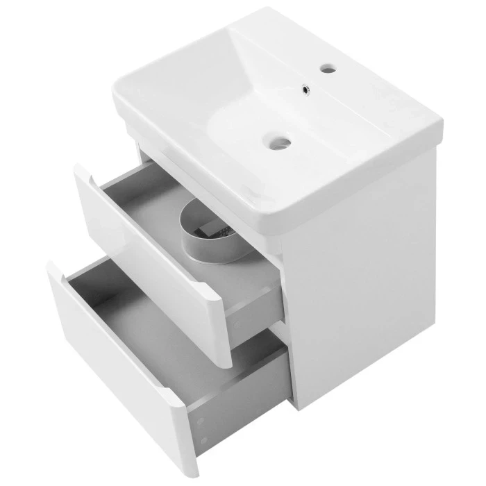 Сама тумба має два великі висувні ящика з доводчиками прихованого монтажу, які забезпечують доступ до простору для зберігання речей. Верхній ящик має спеціальний виріз під сифон для зручності, щоб забезпечити повне відкриття та закриття фасаду, не перешкоджуючи сифону. Вся конструкція тумби розміщена на регульованих підвісах з активним навантаженням до 90 кг.