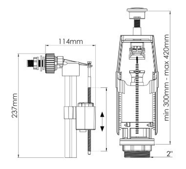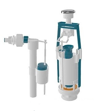 Сливной механизм с хромированной кнопкой, Боковой впускной клапан 1/2", Уплотнительная прокладка между бачком и унитазом, Нержавеющие болты для крепления бачка к унитазу, длина 85 мм