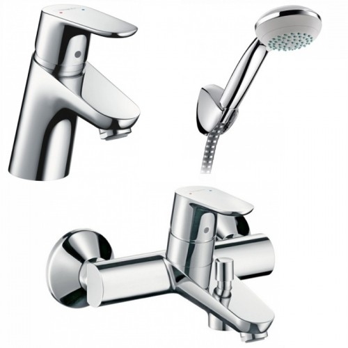 Смеситель ванну, смеситель на умывальник, лейка,шланг и держатель, гарантийный талон, инструкция по мантажу.